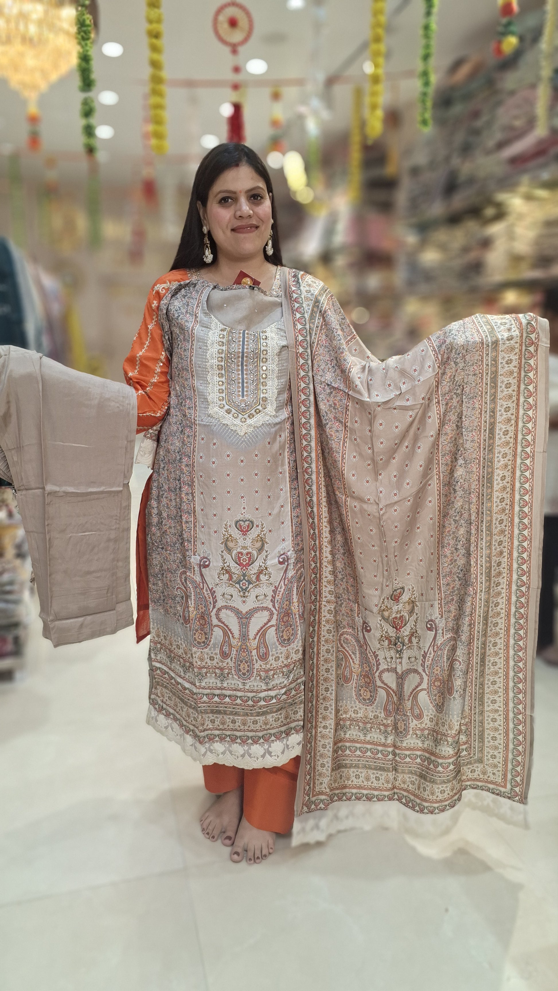 PREMIUM CREPE HEAVY NECK DESIGN 3 PC SUIT