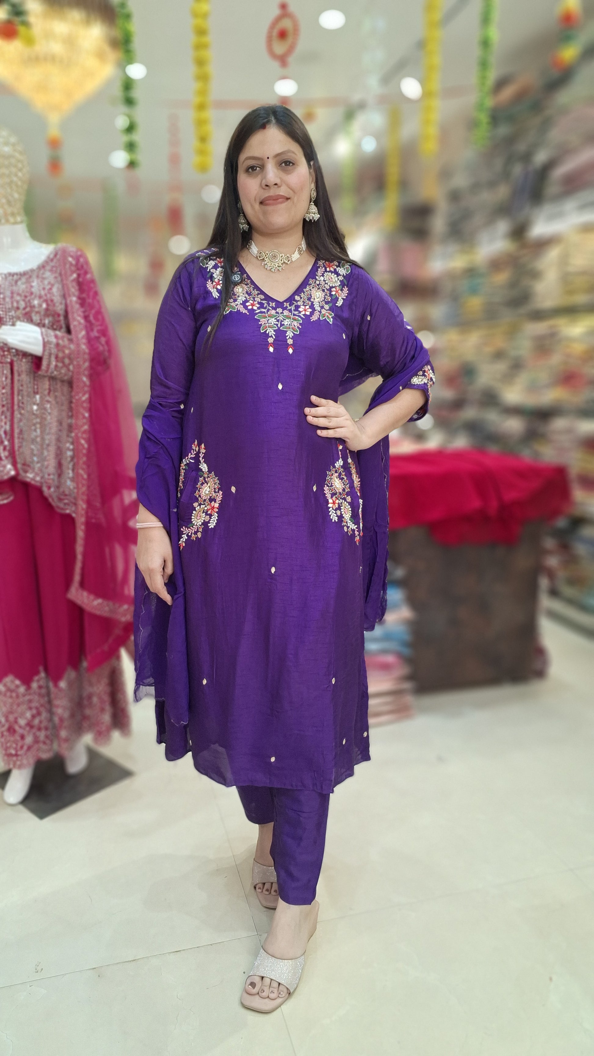 PREMIUM SILK PARTY WEAR A LINE SUIT