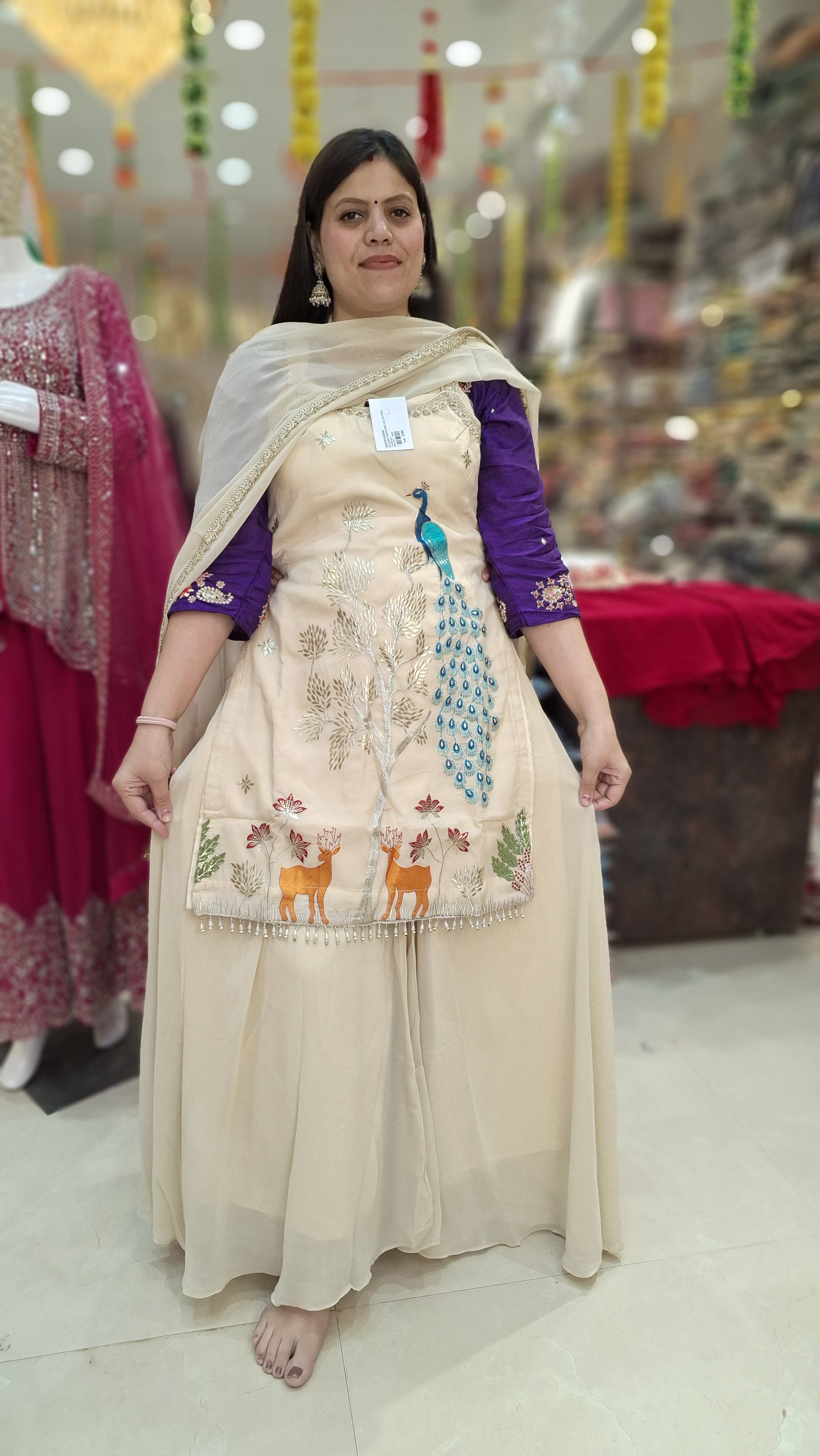 PREMIUM SILK PEACOCK DESIGNER NECK HEAVY JAFFA SUIT