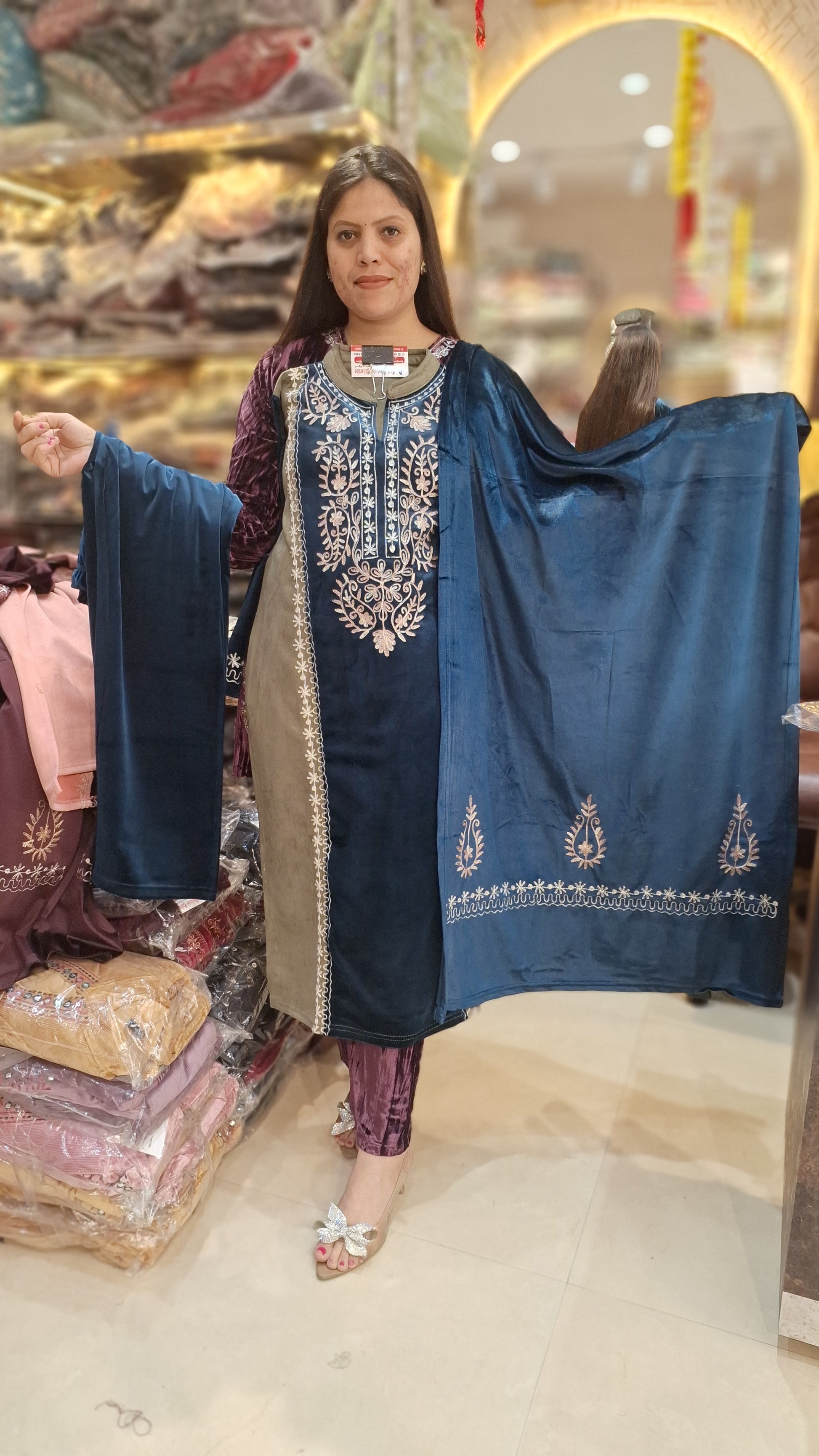 PREMIUM VELVET DUEL COLOUR SHAWL SUIT
