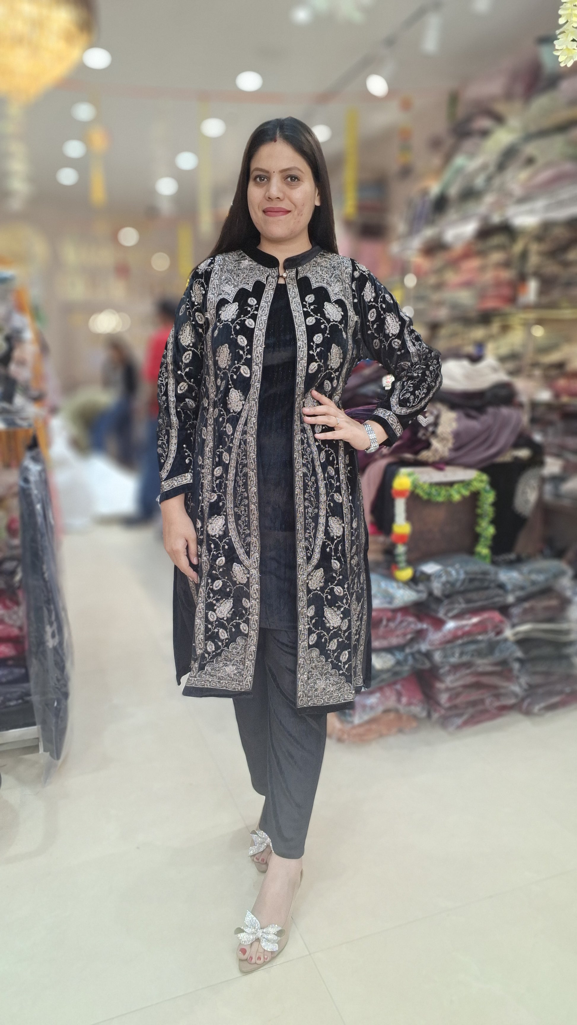 PREMIUM VELVET INER WITH BEAUTIFUL ZARI WORK SHRUG 3 PC CORDSET