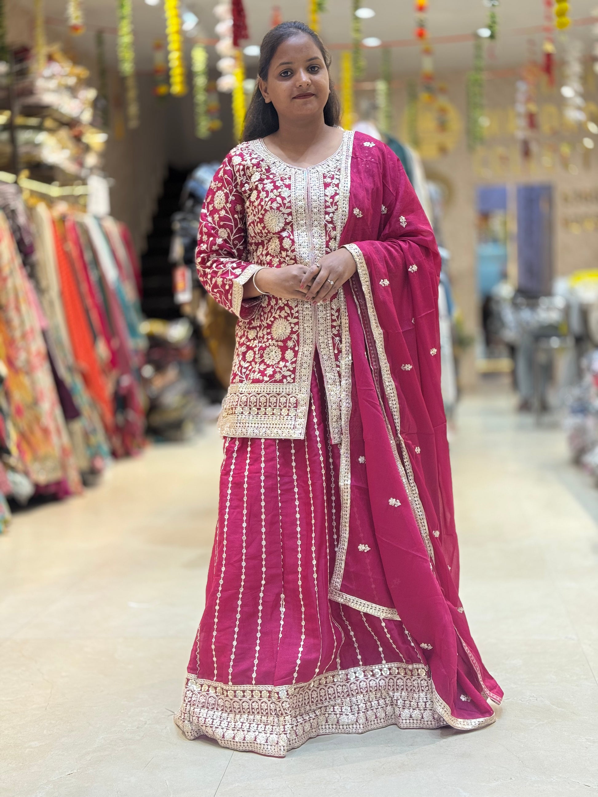 PURE CHINON TIILLA AND THREAD WOTK WITH LEHNGA