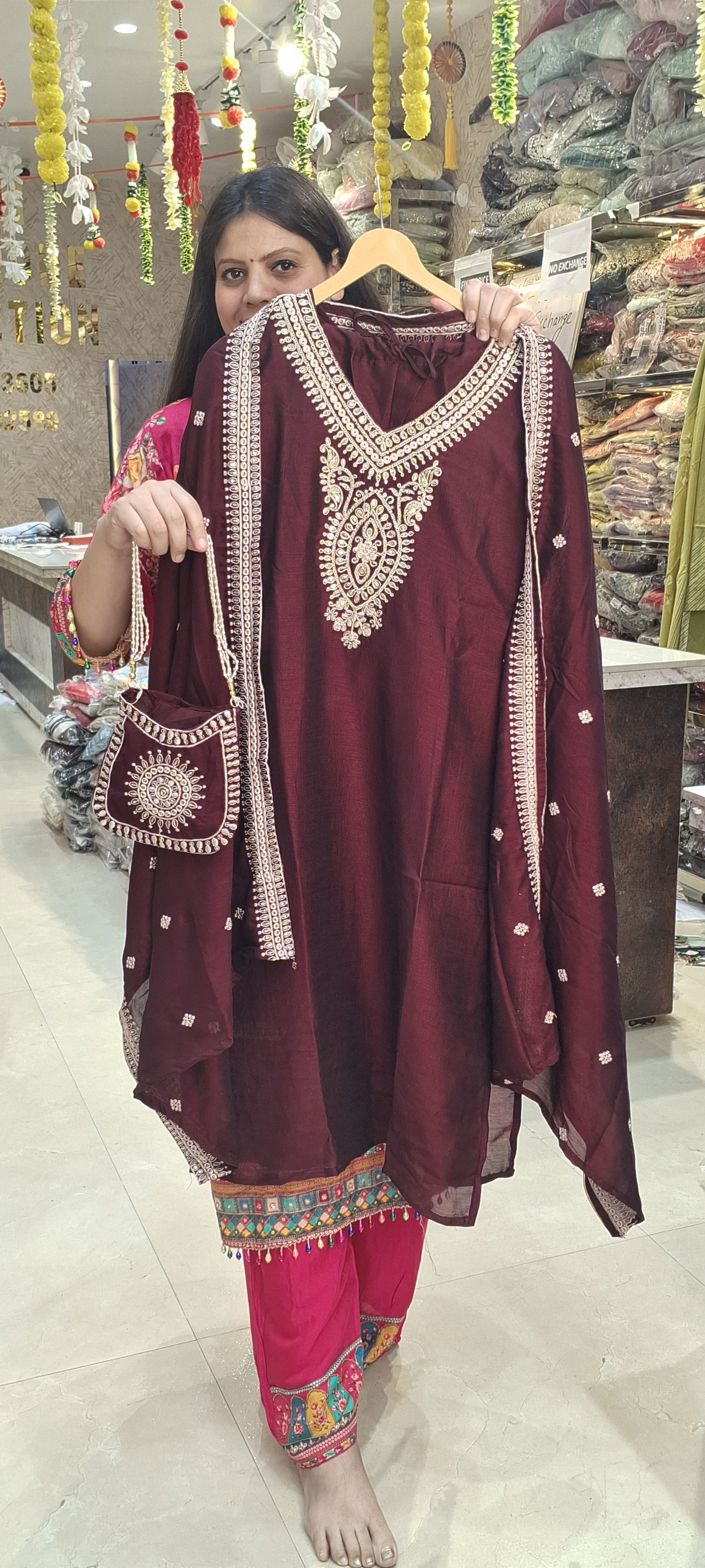 Pure Chinon Wine Straight Suit With Sling