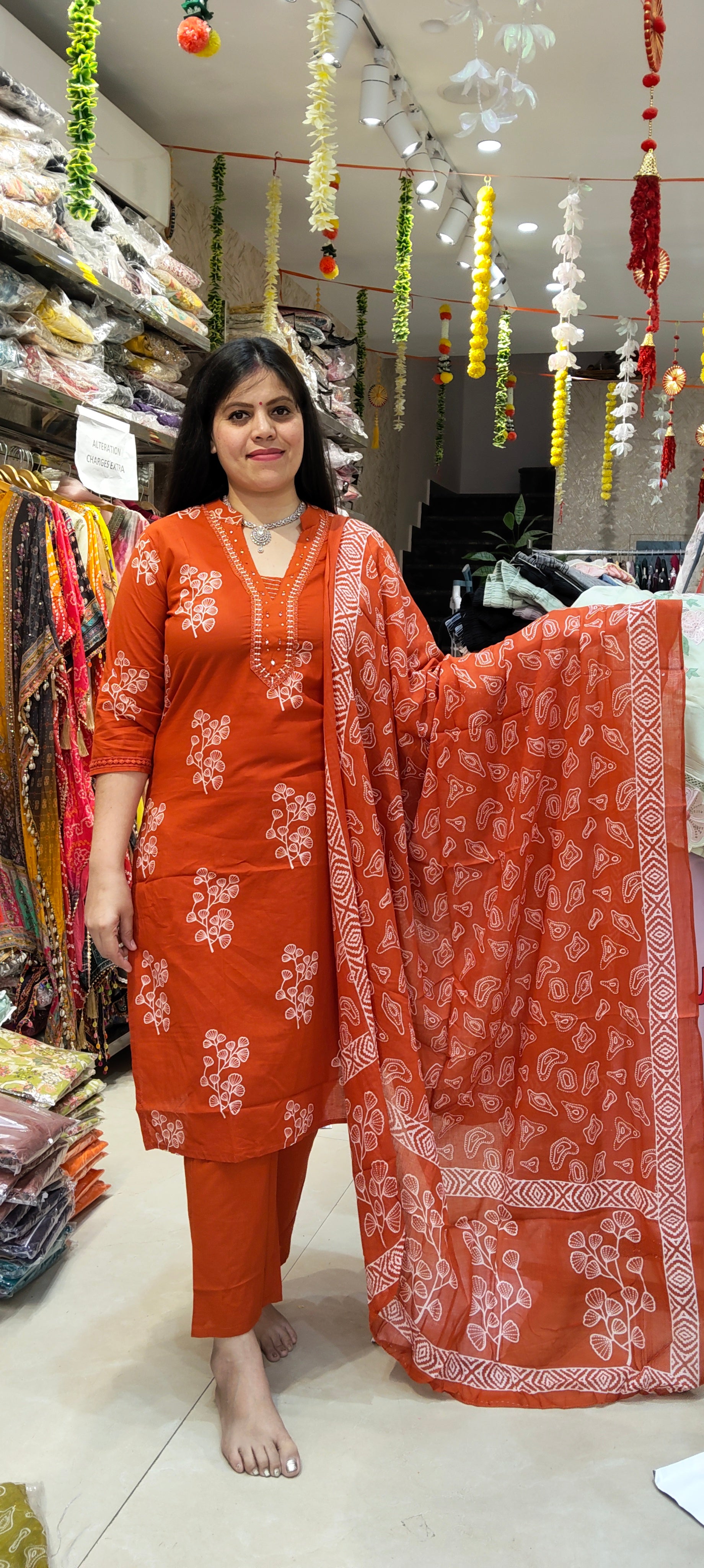 Experience comfort and style with this Pure Cotton V-Neck Designer Suit, available in sizes M to 3XL. Crafted from premium pure cotton fabric, it ensures breathability and softness for all-day wear. The elegant V-neck embroidery adds a refined touch, making it suitable for both casual and formal occasions. This suit combines traditional craftsmanship with modern design, offering a versatile addition to your wardrobe.