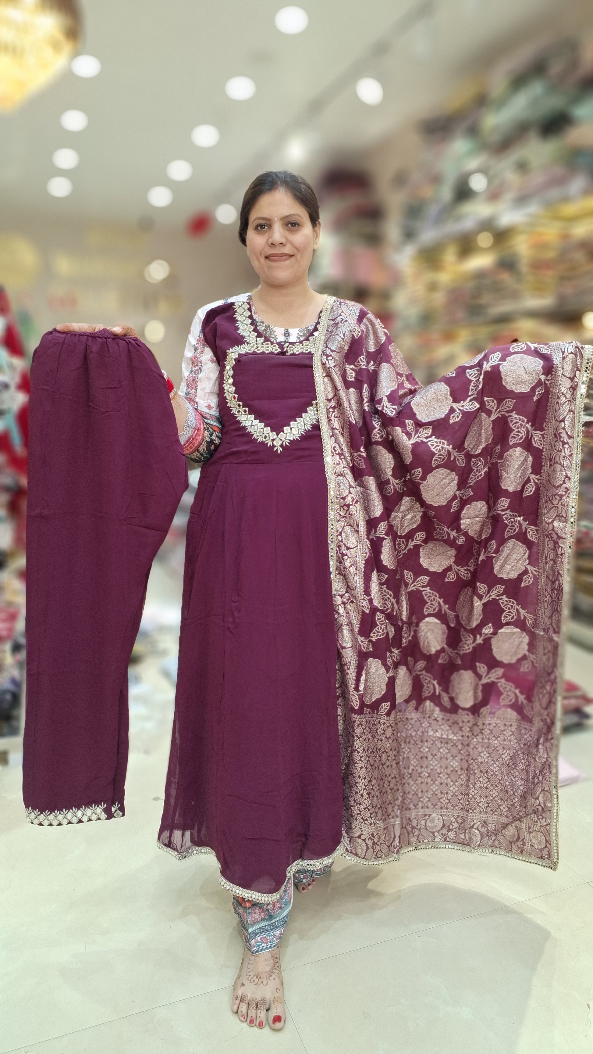 PURE GEORGET NECK DESIGN WITH BEAUTIFIL DUPPTA