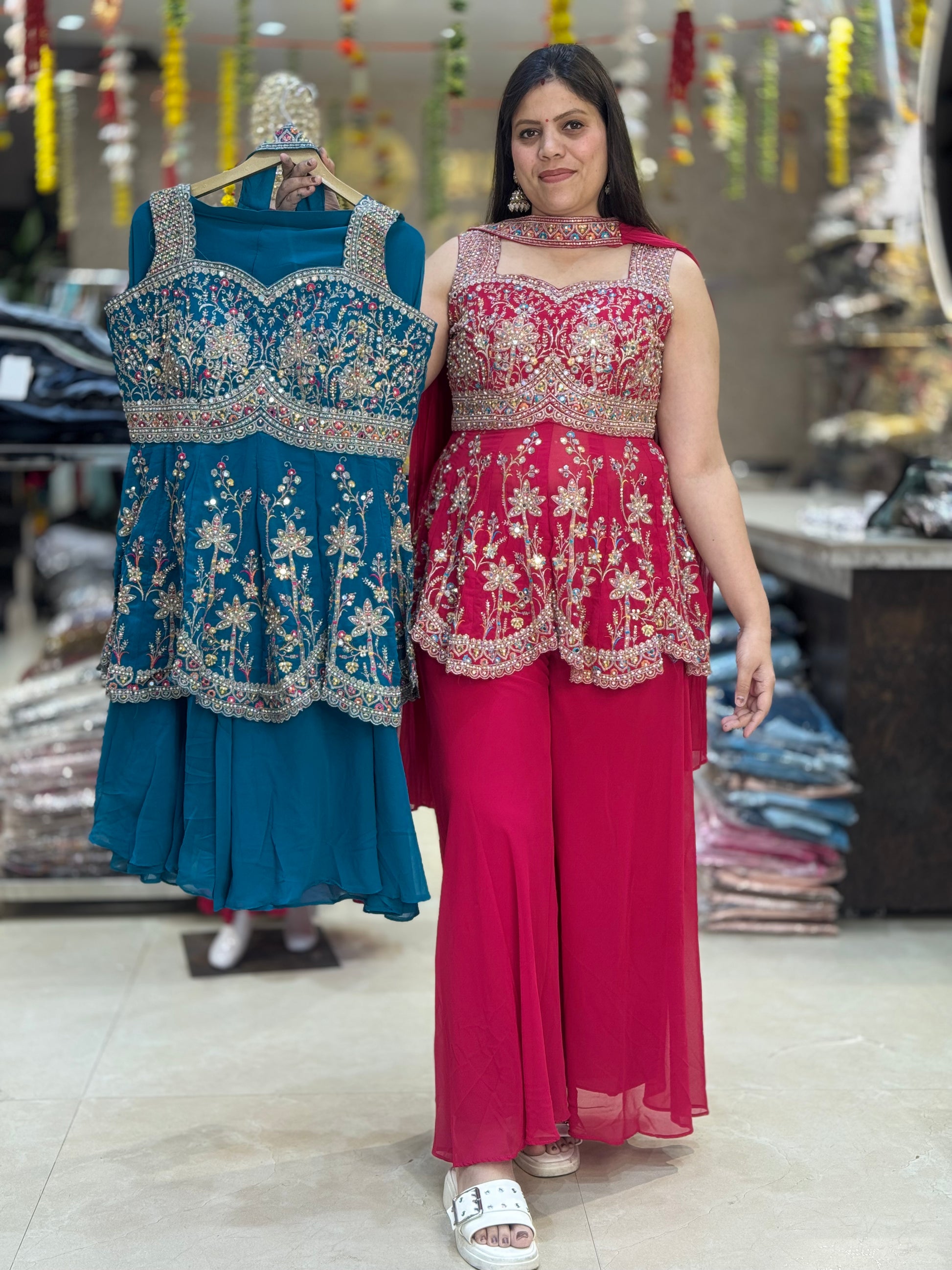 PURE GEORGET SHORT KURTI DESIGNER WITH JAFFA DRESS