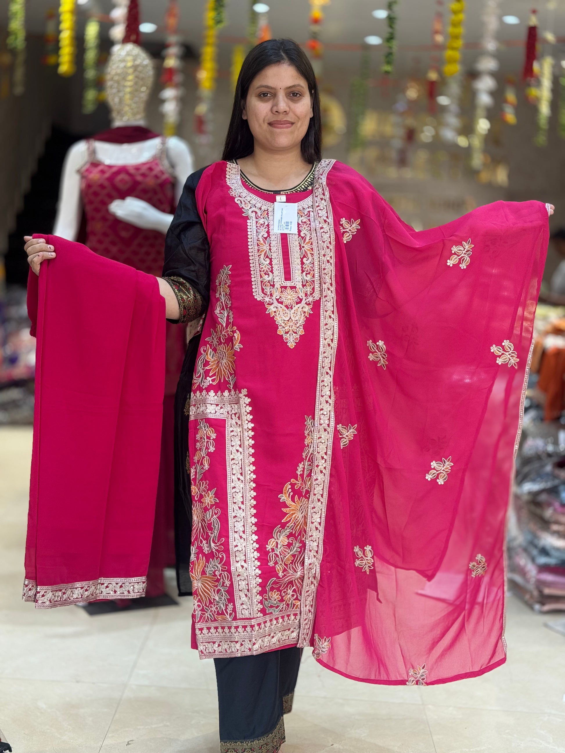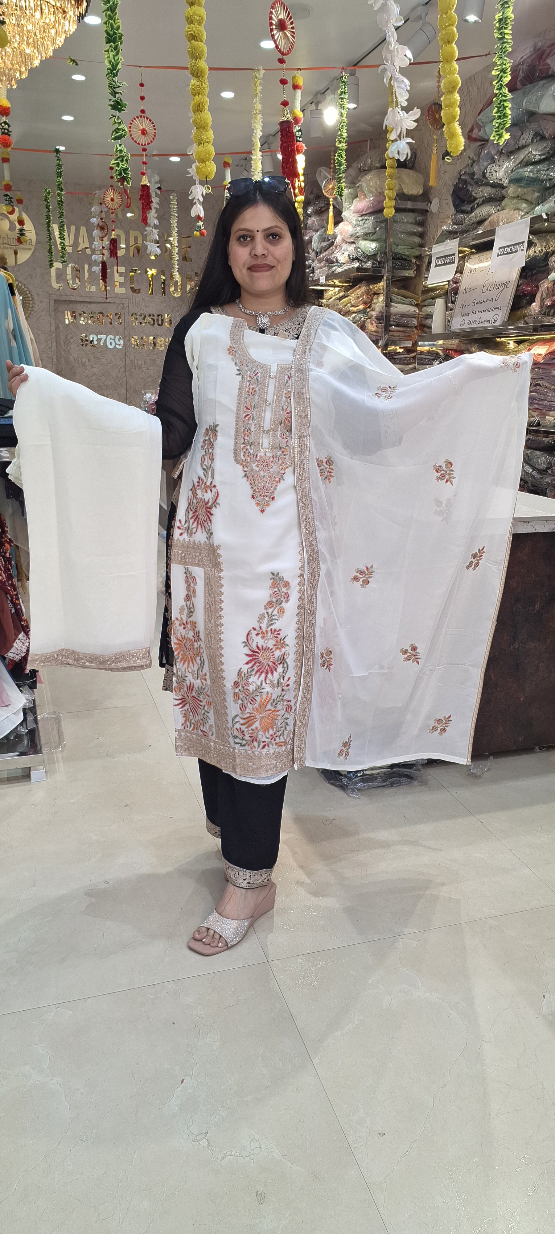 Pure Georgette With Thread Work Back & White Suit P7EL0001(JK)