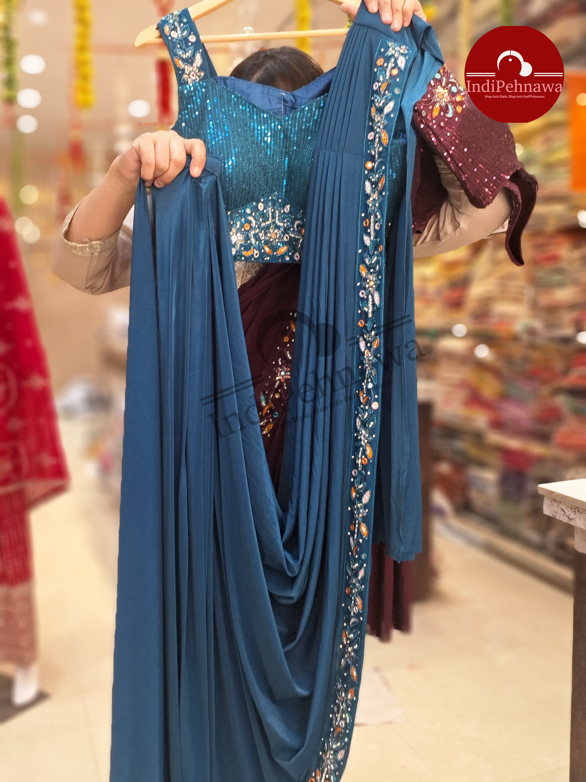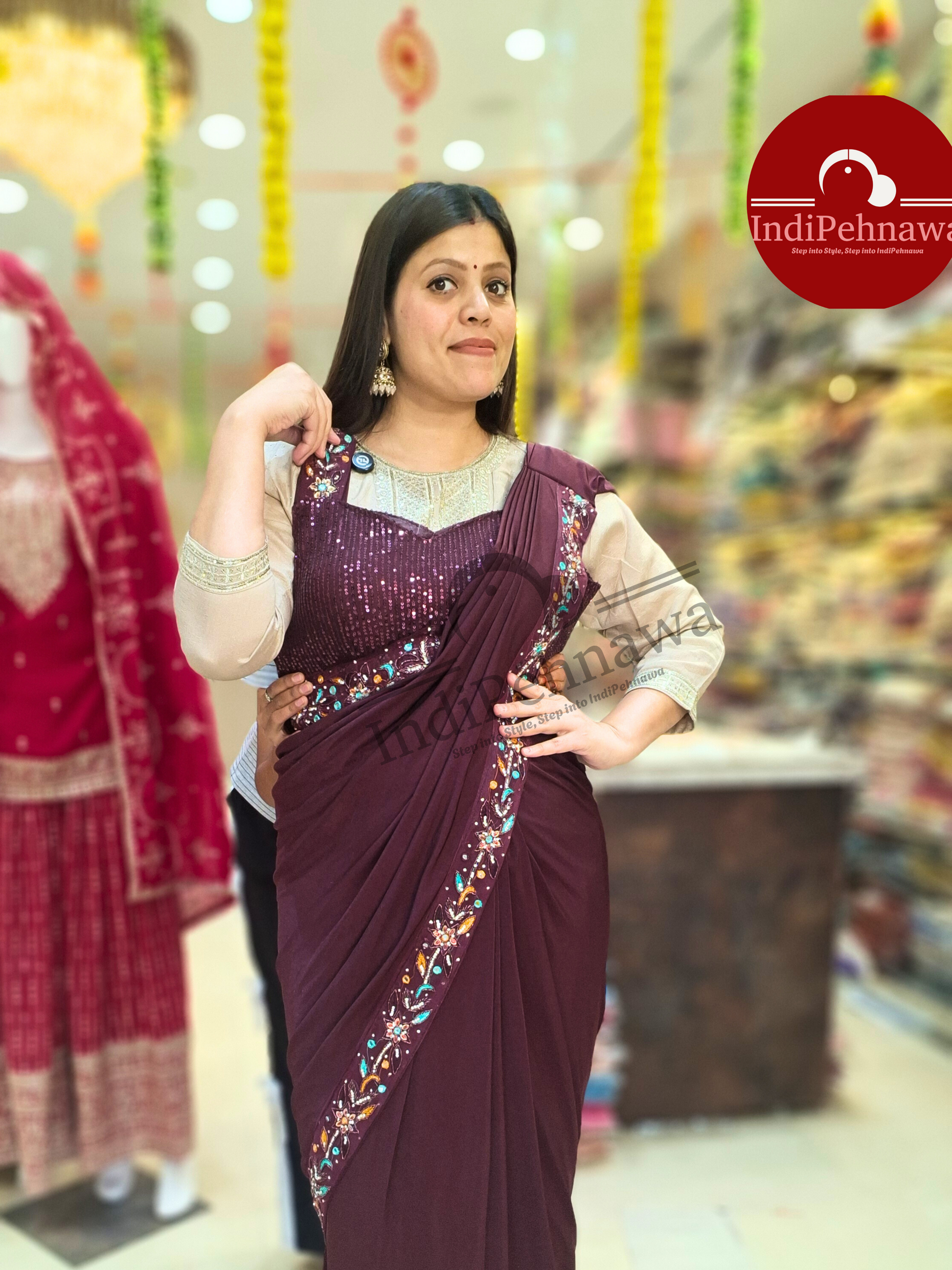 READY TO WEAR SAREE WITH SIPPY AND THREAD WORK IN GEORGETE (OAPL0111)