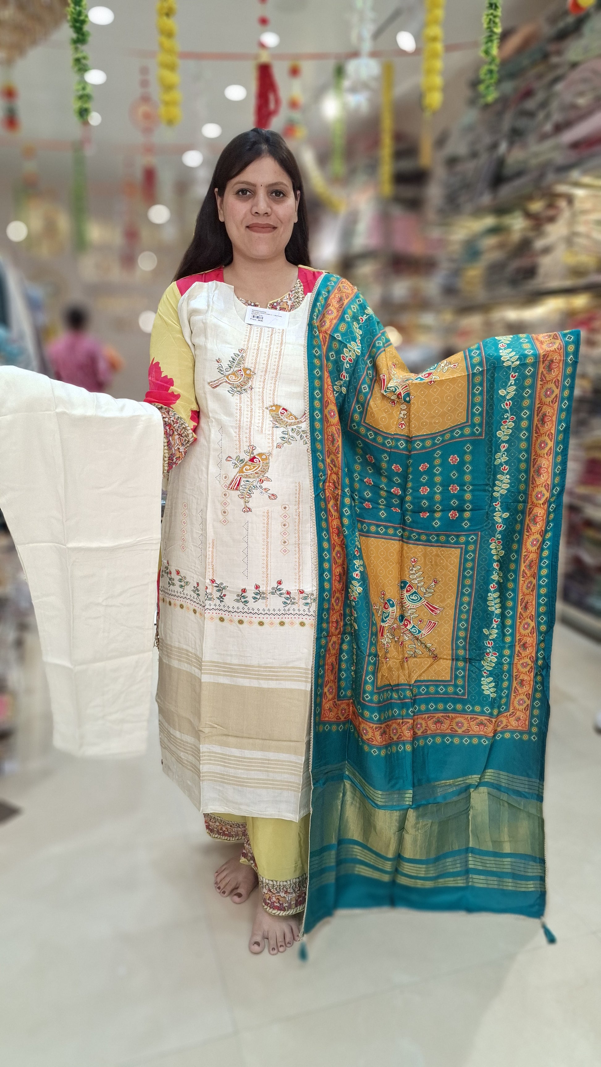 RUSSIAN SILK WITH HAND EMBROIDED SUIT IN IVORY SHADE