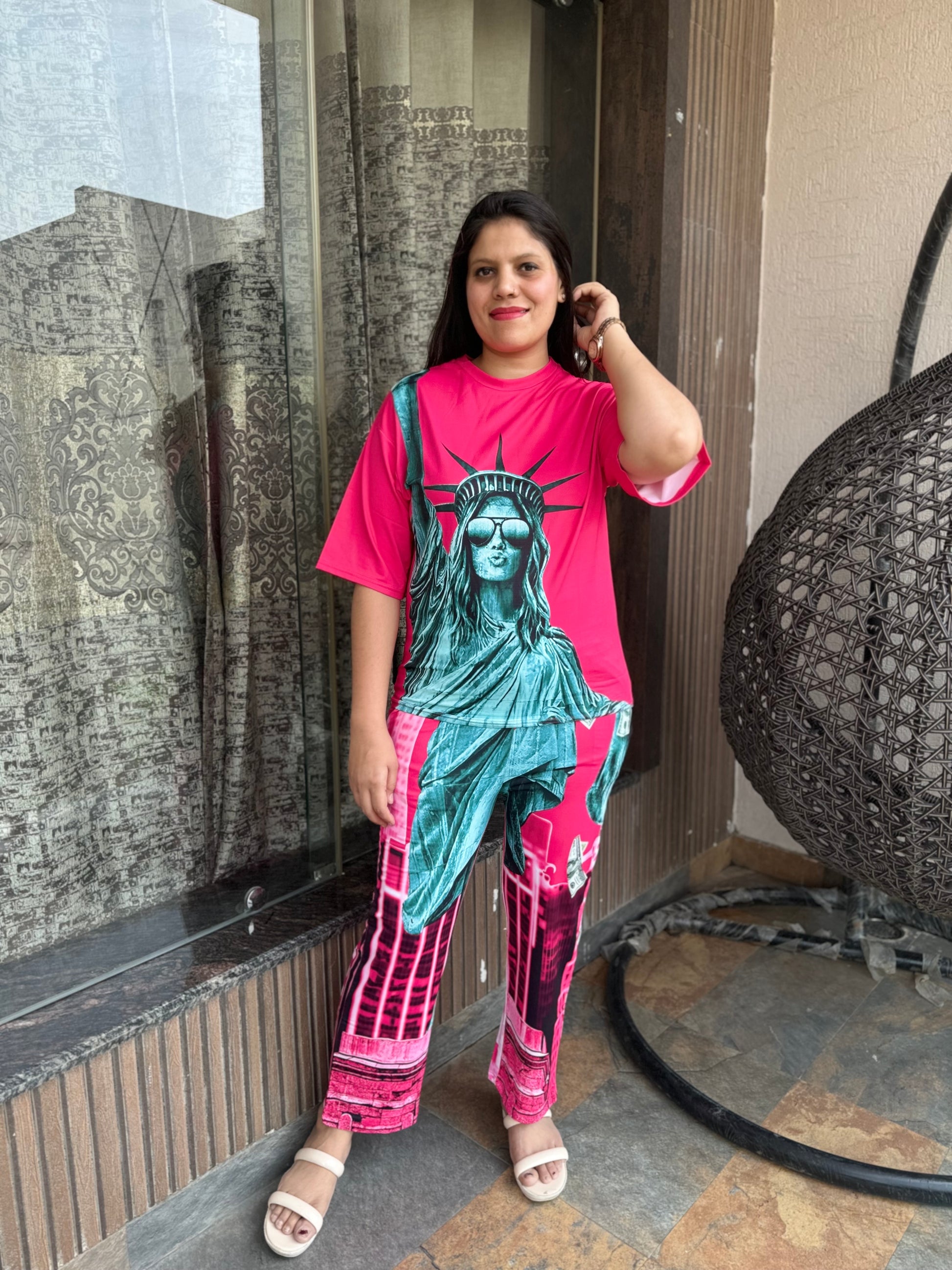 Conquer new challenges with our Statue Of Liberty Print Cord Set! Made with Spendix Cotton, this set offers comfortable fit up to XL size. T-shirt length of 27 and bottom length of 39 provide freedom of movement. Dare to be different!
