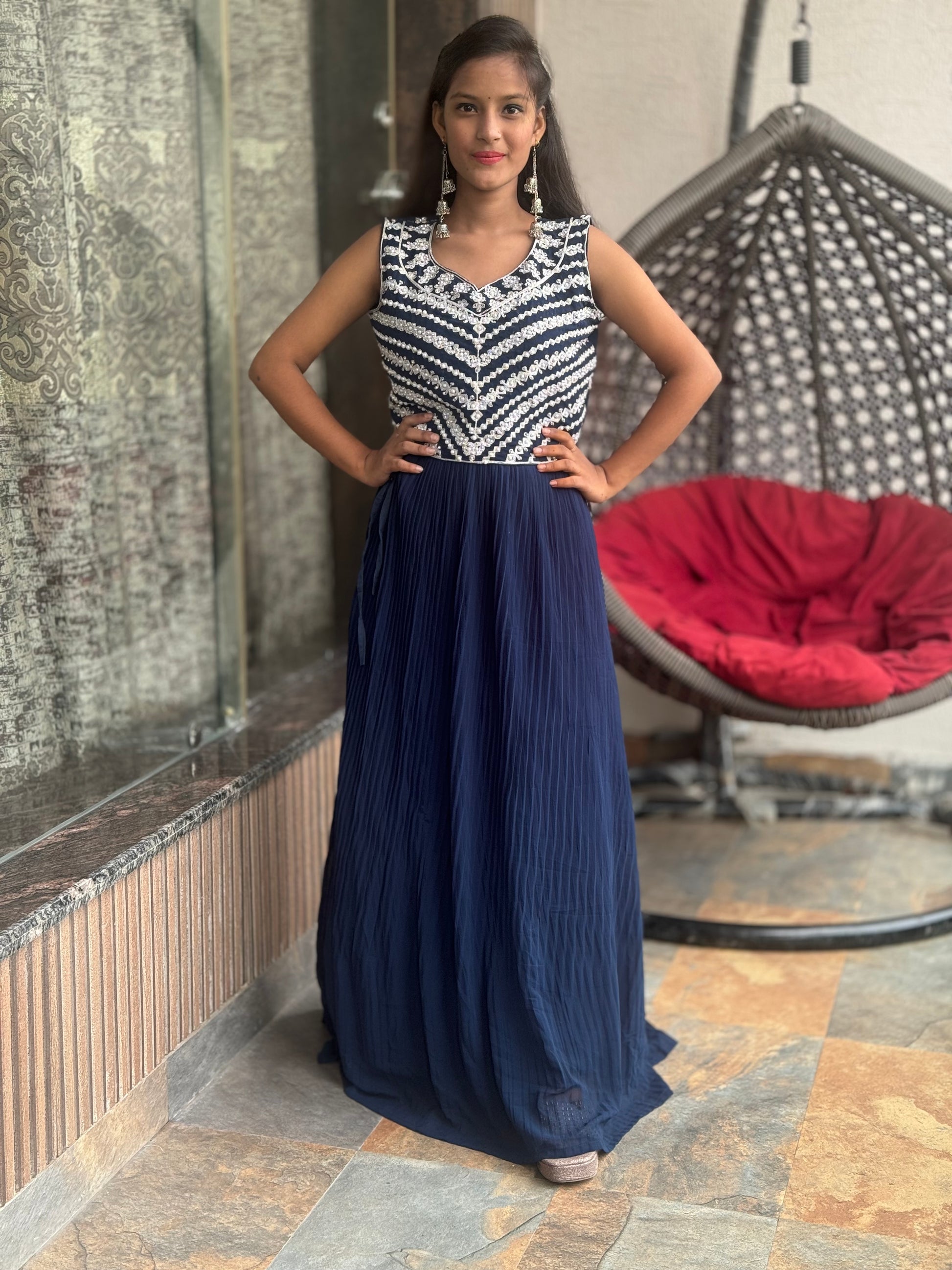 Introducing our STYLISH 3 PIECE SHUG LEHNGA, the perfect outfit for any special occasion. Made from high-quality georgette fabric, this lehnga comes in sizes S to XL (minor choli alteration required). The choli and shrug feature beautiful pearl and zircon work, adding an elegant touch to this ensemble. Top length is 16, bottom length is 46, and shrug length is 56. Elevate your style with our SHUG LEHNGA.