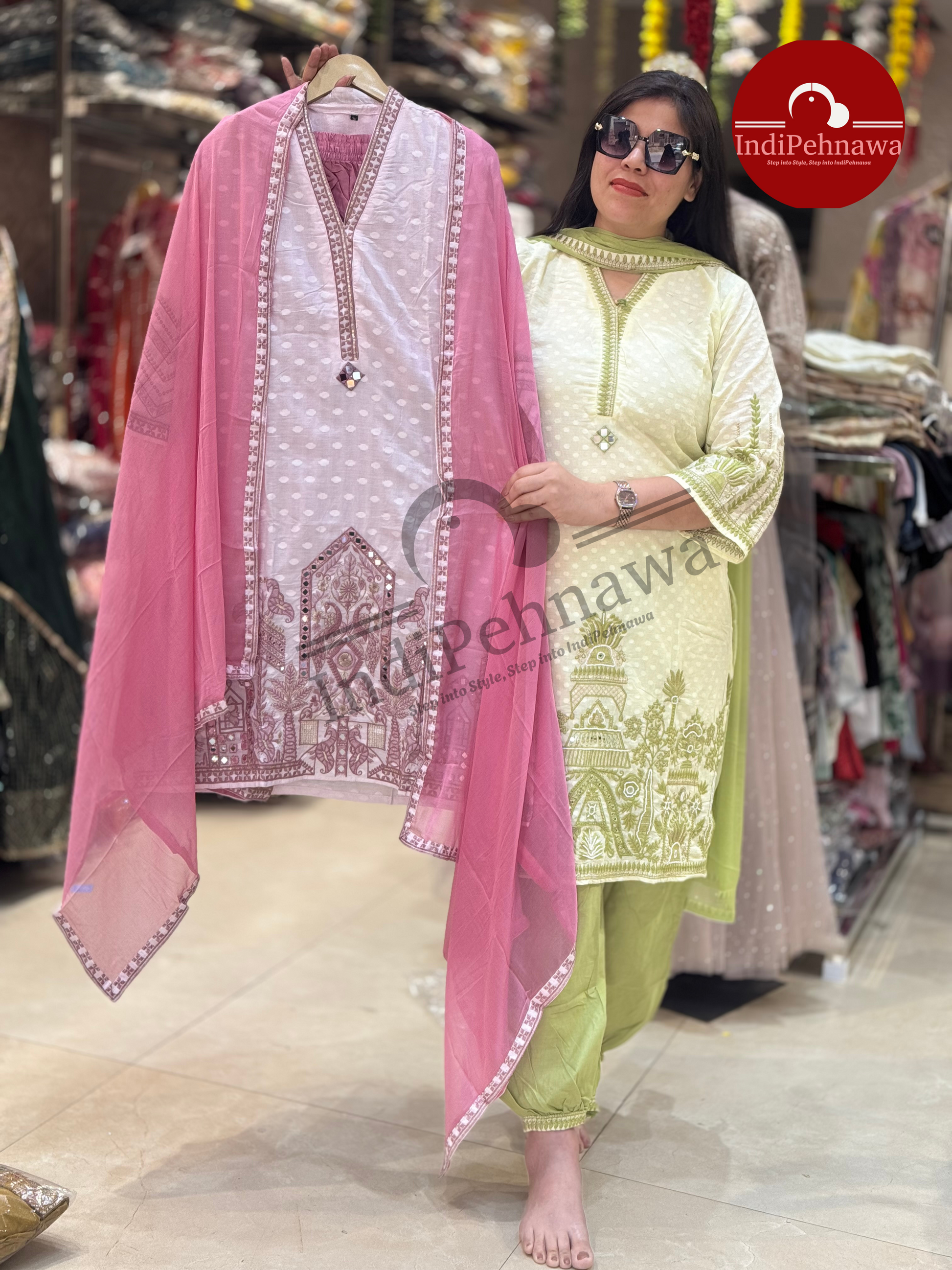 Experience the elegance of our Stylish Indian Suits featuring meticulous full hand thread embroidery. Crafted from pure cotton with comfortable lining, these suits offer both luxury and breathability. Available in inclusive sizing from M to XXXL, each piece showcases authentic artisanal craftsmanship that elevates traditional Indian attire to contemporary fashion statements.