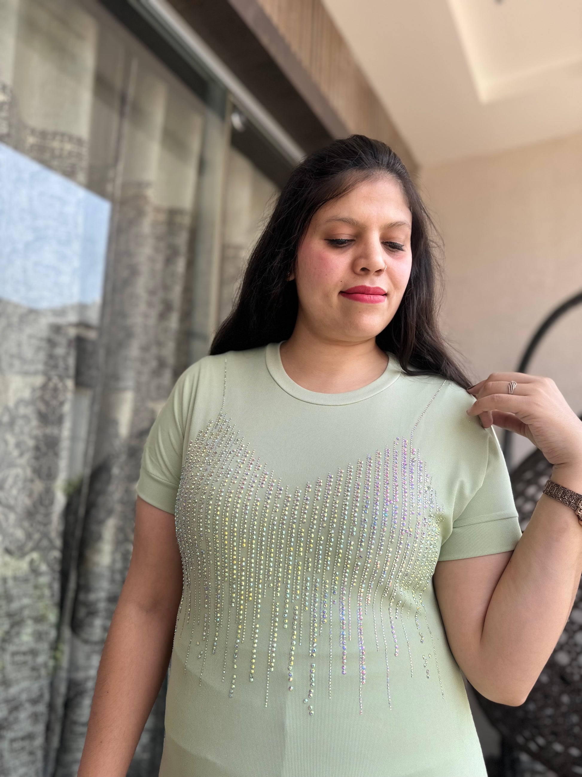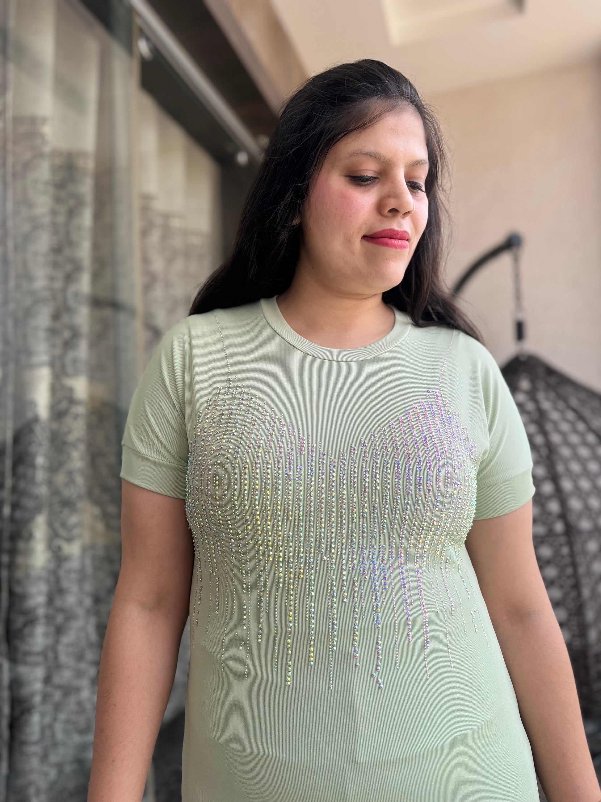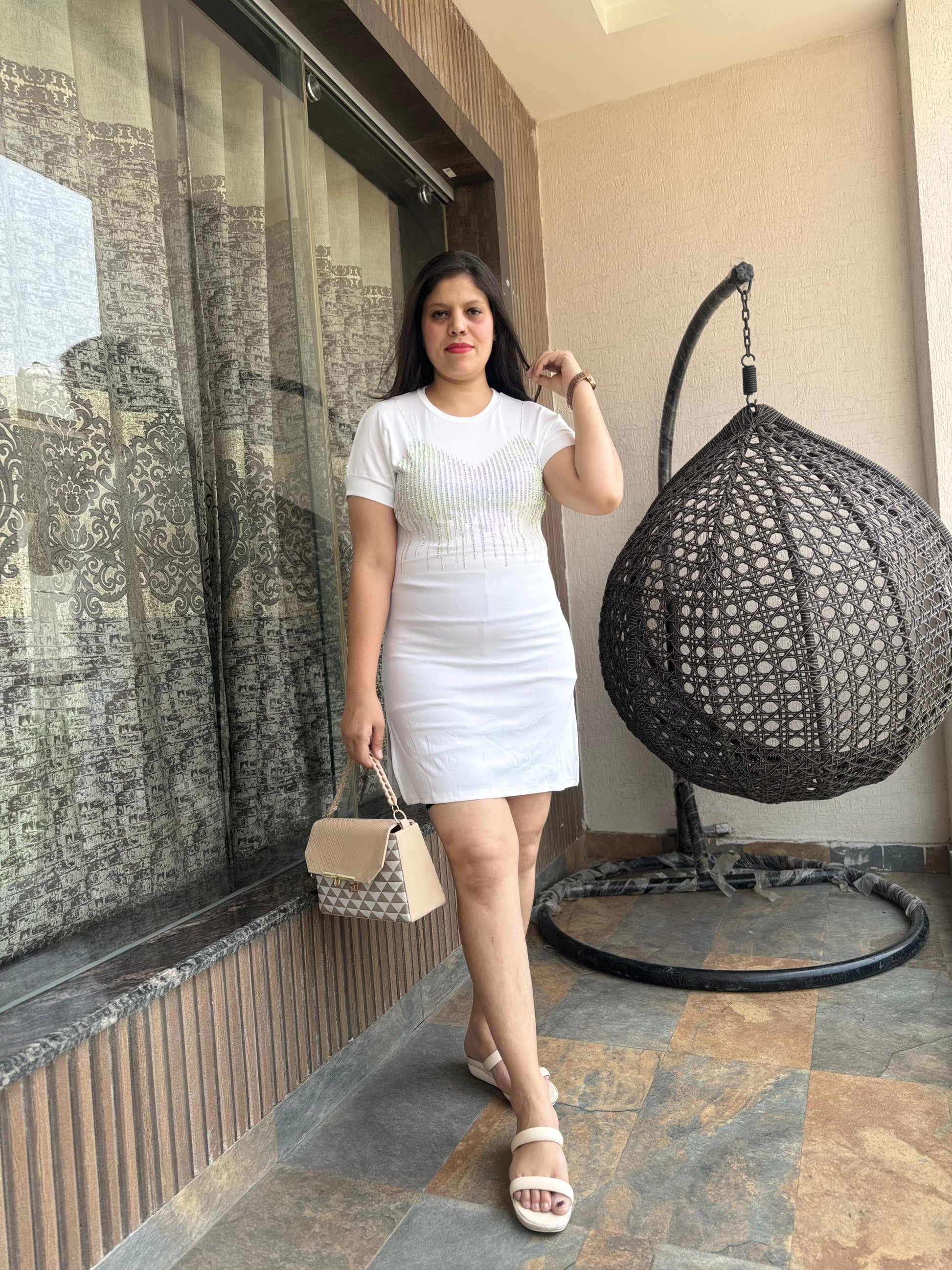 Step out of your comfort zone and embrace the bold and daring with our Stylish Sirvoski Dress! Made from Cotrise Cotton, this versatile dress will fit free size up to XXXL and reach a length of 37 inches. Perfect for those who love to take risks and make a statement.