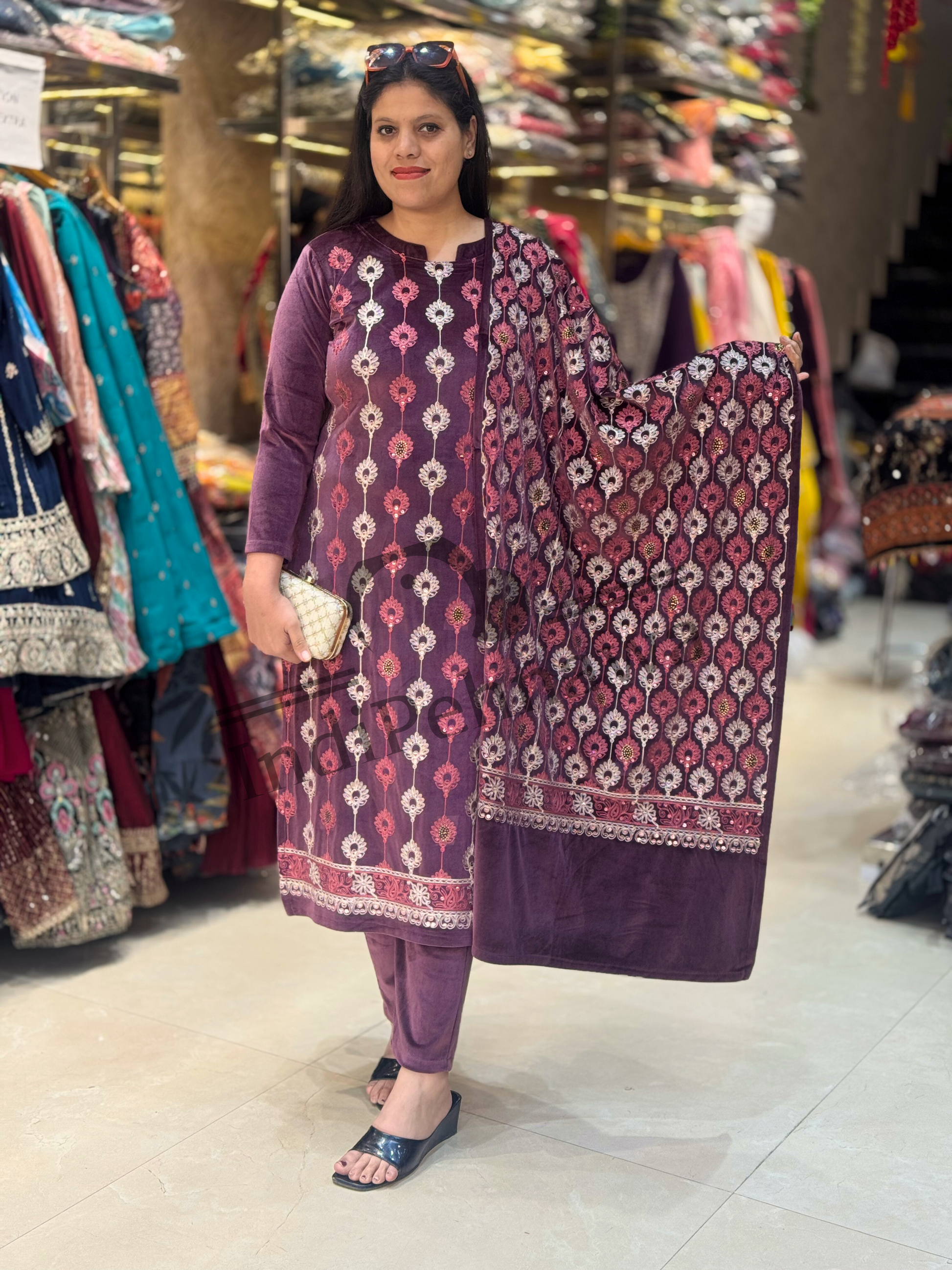 Traditional Velvet Suit with Fine Thread & Sippy Artistry