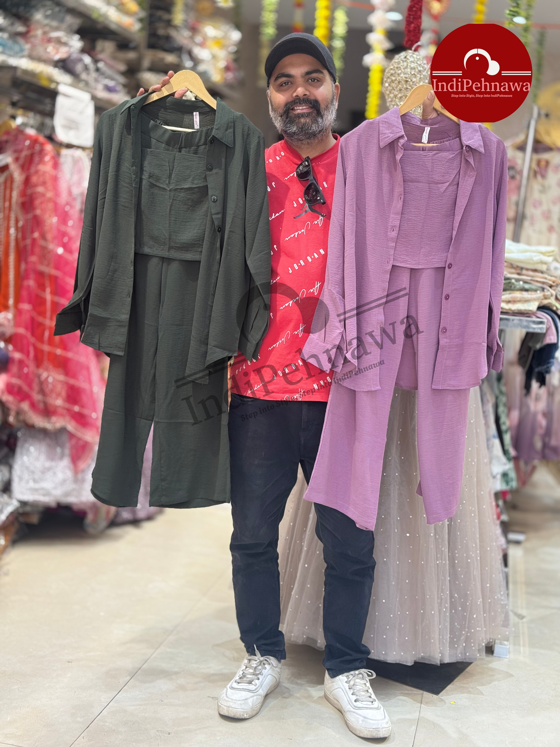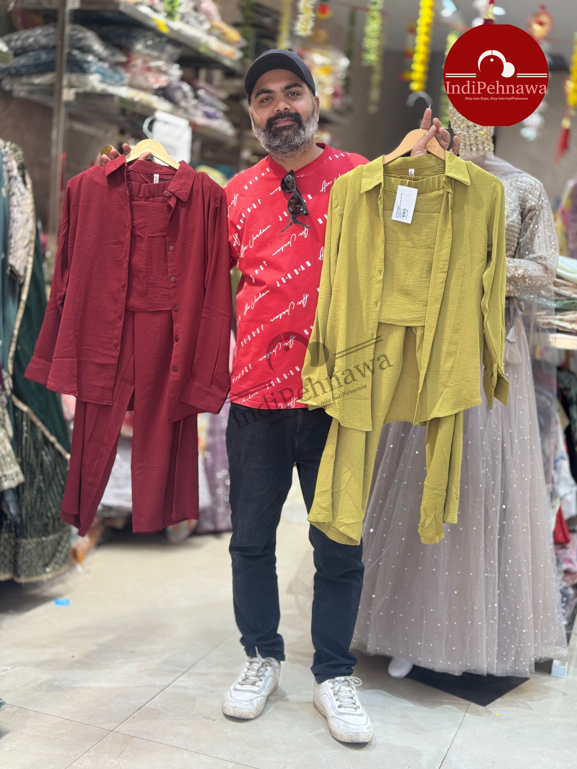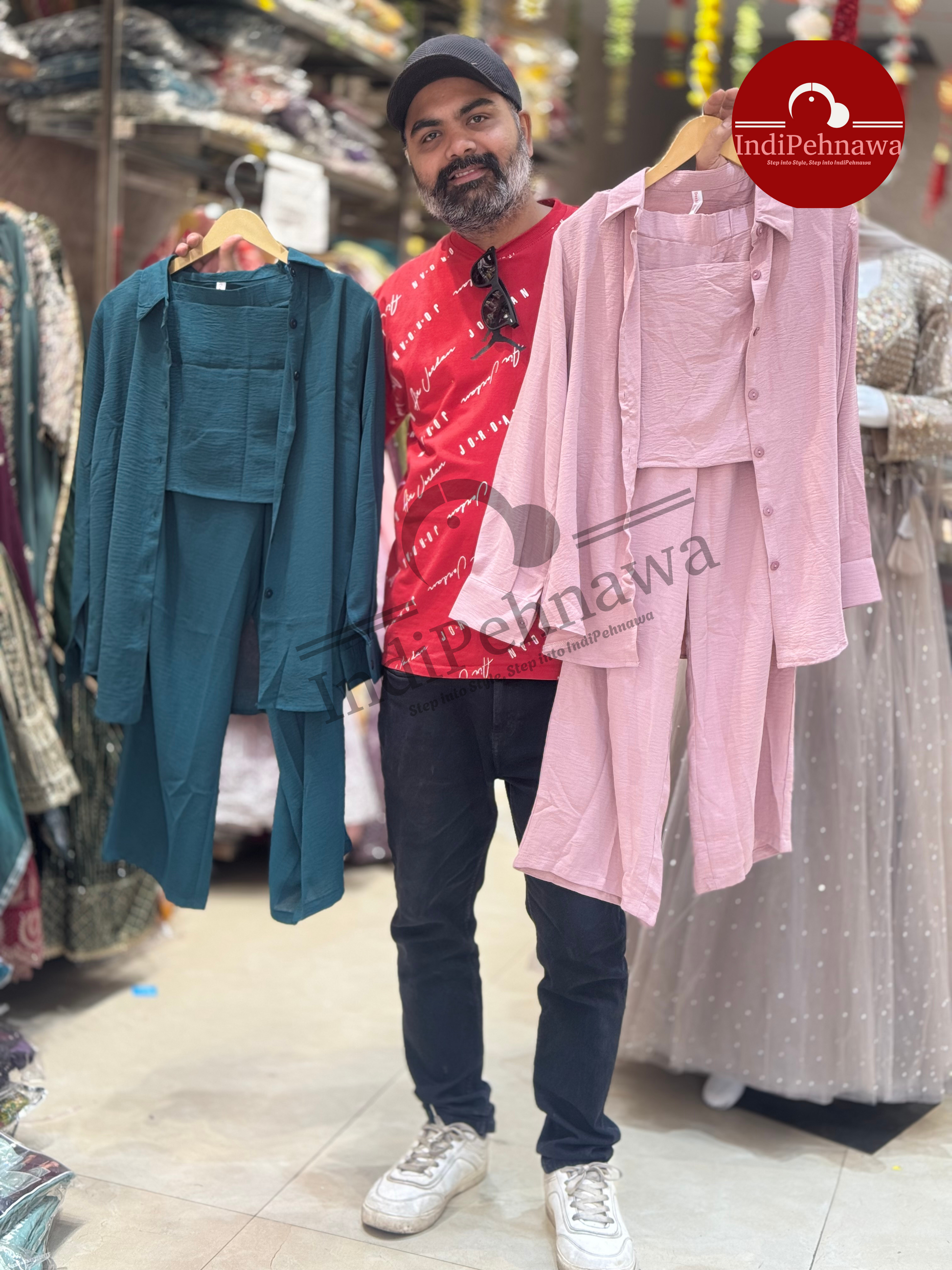 Expertly crafted three-piece cord sets featuring versatile top and shirt styles designed for women. These adaptable ensembles accommodate a range of body types with their generous free-size fit, suitable for sizes up to XL. The coordinated sets offer effortless styling while the quality cord fabric ensures both comfort and durability for everyday wear.