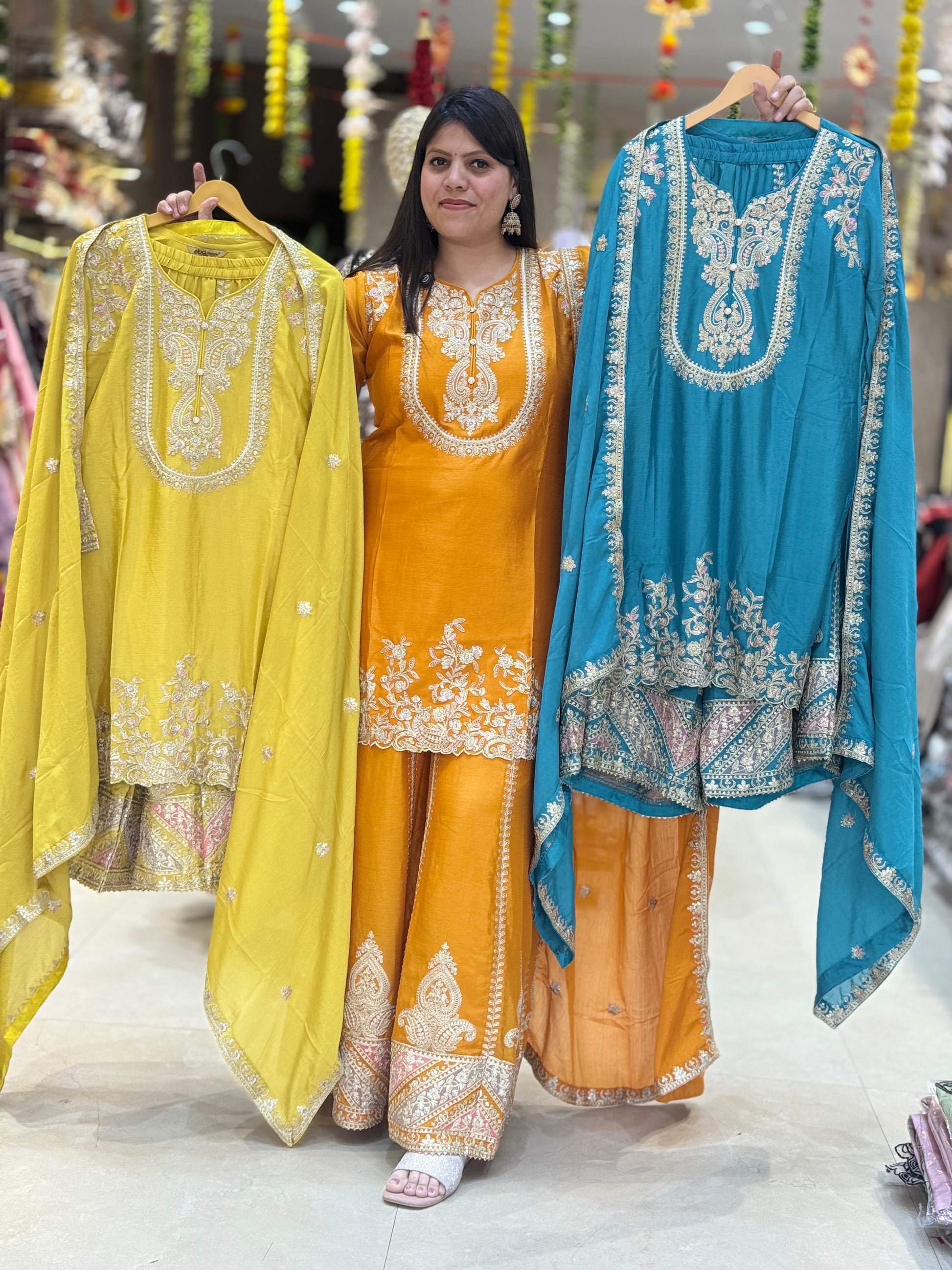 WEDDING SPECIAL CHINON PURE ZARI AND TILLA WORK JAFFA SUIT