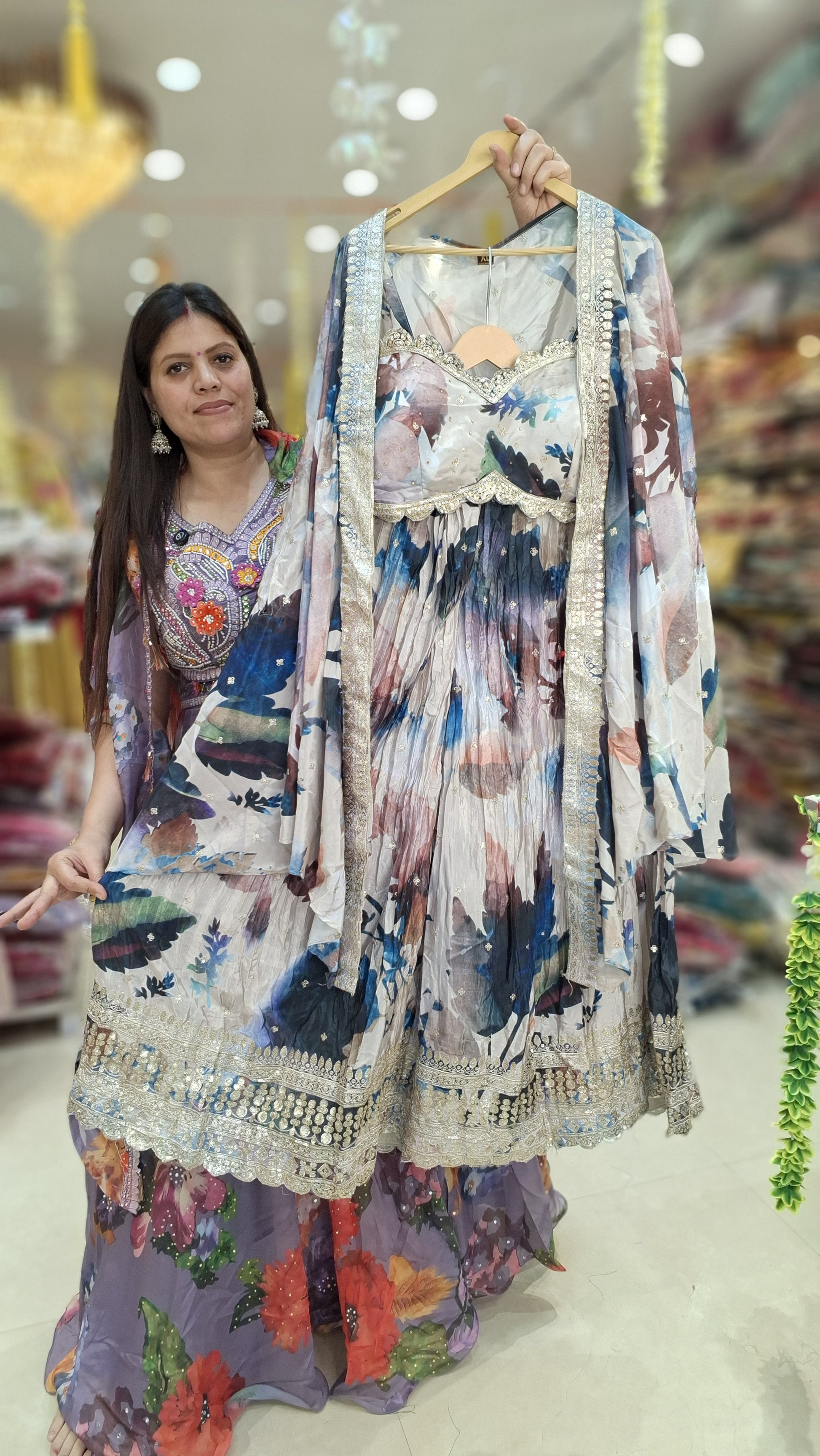 WHITE BASED FLORAL DESIGN CROPE TOP WITH JAFFA WITH BEAUTIFUL CAPEE