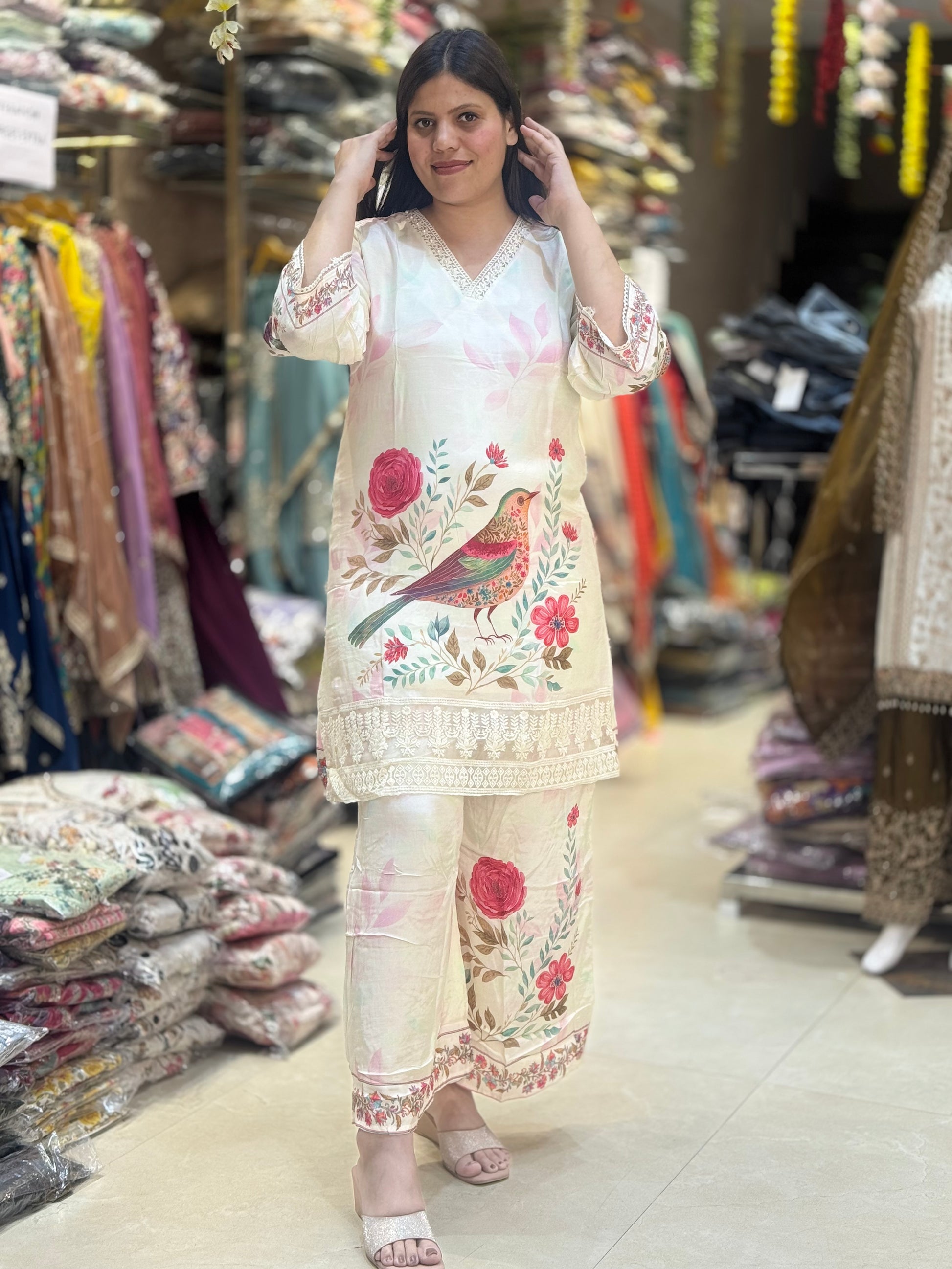 WHITE SPARROW DESIGN BEAUTIFUL 2 PC MUSLIN CORDSET