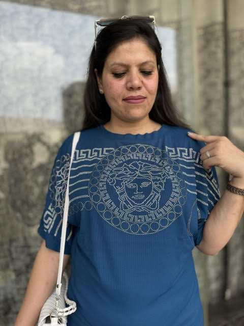 Introducing the Women's Designer Sirvoski Co-ord Set, made with Cotrize Cotton for ultimate comfort. This set comes in a versatile Free Size, fitting sizes M to 46(Free Size). The shirt is 27 inches long while the bottoms are 41 inches, providing stylish and comfortable coverage.